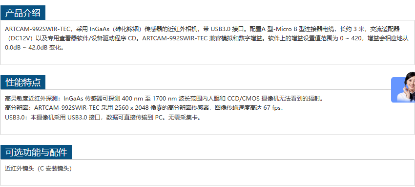 ARTRAY短波红外相机ARTCAM-992SWIR-TEC