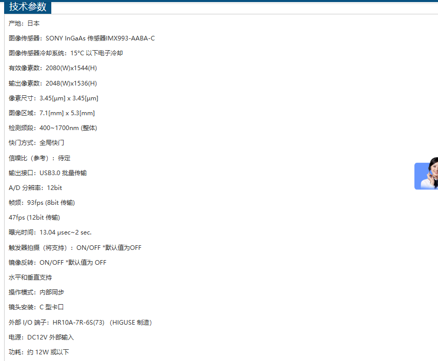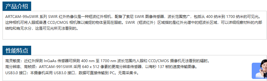 ARTRAY短波红外相机ARTCAM-993SWIR-TEC